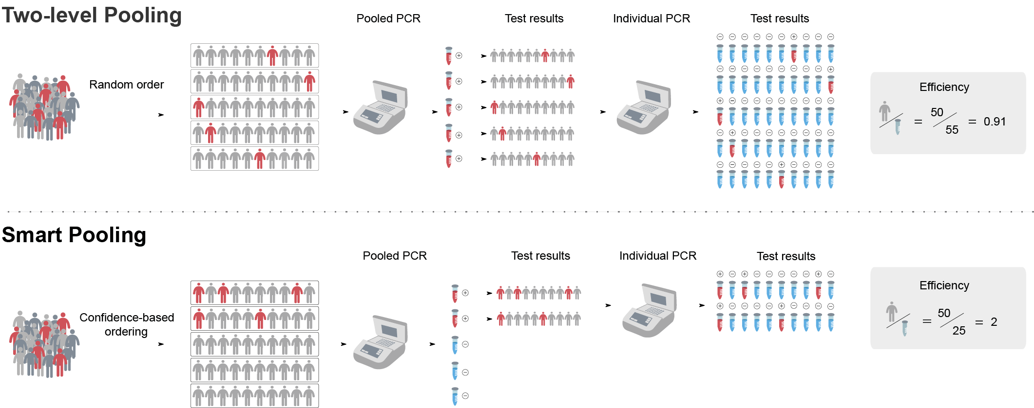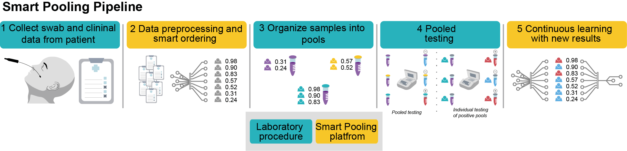 Smart Pooling es un sistema de Inteligencia Artificial (IA) que nos permitirá mejorar de una manera increíble el número de pruebas de COVID-19 que se pueden realizar cada día en Colombia y en el mundo, sin necesidad de reactivos moleculares adicionales y sin ningún costo. Si desplegáramos Smart Pooling mañana en Colombia, podríamos multiplicar por tres el número de pruebas que se hacen al día en el país sin ningún costo, es decir, transformaríamos inmediatamente nuestra capacidad de lucha contra la pandemia.